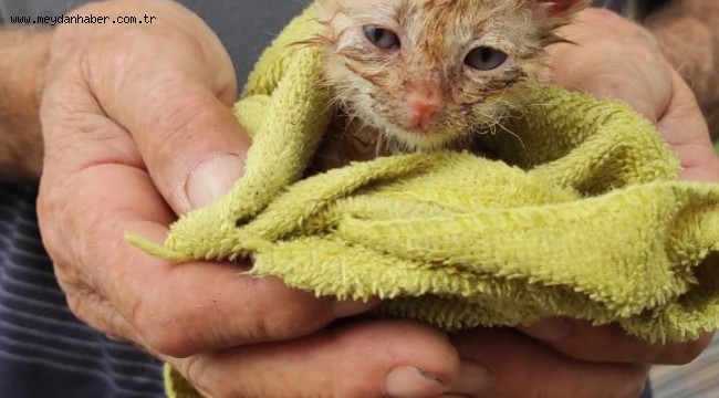 YAVRU KEDİ SIKIŞTIĞI YERDEN 1 SAATİ AŞAN TİTİZ BİR ÇALIŞMA İLE KURTARILDI