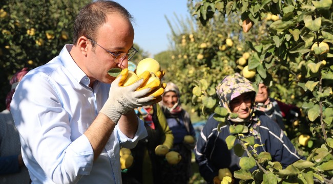 Denizli’de 10 bin dekar alanda yapılan ayva üretiminin büyük bölümü Pamukkale ilçesinin Irlıganlıbölgesinde gerçekleşiyor. Bu yıl 20 bin ton rekolte beklenen ayvada Ekim ayında başlayan hasat döneminin ikinci bölümü devam ediyor. Üretimi yapılan ayvaların yüzde 70’i başta AB ülkeleri olmak üzere dünyanın dört bir yanına gönderiliyor. Irlıganlı bölgesinde ayva hasadı devam ederken Pamukkale Belediye Başkanı Avni Örki, hasat çalışmalarına devam eden çiftçileri tarlalarında ziyaret etti. Ayva toplayan işçilerle sohbet eden Başkan Örki, eline eldiven giyerek ayva hasadı yaptı. Ayvanın çok önemli bir meyve olduğunu söyleyen Huriye Çelik, “Ayva her şekliyle tüketilebiliyor. Meyve olarak yenildiği gibi reçel, hoşaf, kışın tüketmek üzere şişelere katılabiliyor. Közde pişirerek de yenilebilen ayva mahallemizden tüm dünyaya gönderiliyor. Ayva sayesinde bir çok kişi de iş imkanı buluyor” dedi.