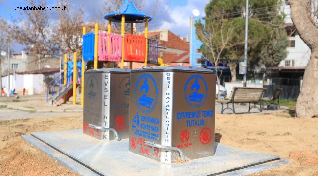 yerleştirilen konteynerler hem evsel hem de geri dönüşebilen atıkların ayrı ayrı toplanmasını sağlıyor.