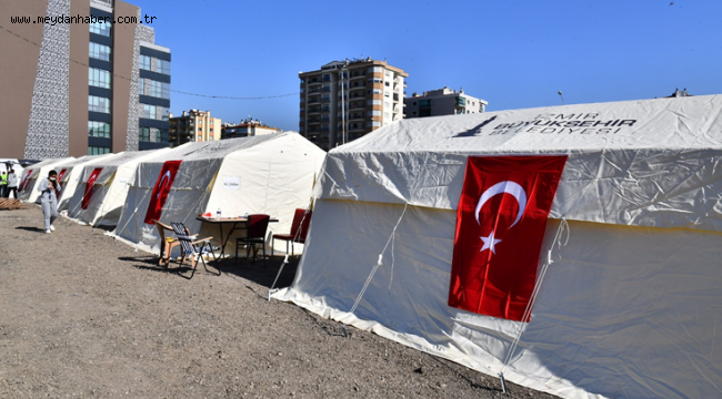 Bayraklı'da kurdukları yeni çadır alanı ile ilgili bilgi veren İzmir Büyükşehir Belediyesi Genel Sekreter Yardımcısı Yıldız Devran, depremzedelerin ihtiyaçlarını daha sistemli bir şekilde giderebilmek için gerekli tüm alt yapı hazırlıklarını tamamladıklarını belirterek, "Depremin hemen ardından yurttaşlarımız enkaz bölgelerinin yakınında olmak istedikleri için o bölgelerdeki parklarda çadır alanı oluşturduk. Onların ihtiyaçlarına uygun şekilde duş, çamaşır yıkama ve kurutma gibi üniteler eklemekle birlikte hizmetlerin daha sistemli yürütülmesini sağlamak hem de yağışlarda oluşabilecek sıkıntıları önlemek için farklı noktalarda dağınık halde bulunan çadırlarda kalan yurttaşlarımızı buraya taşıyoruz. Zeki Müren, 75. Yıl parkları, Migros bahçesi ile Değirmen Kafe önündeki yeşil alanda çadırlarda yaşayan yurttaşlarımızın buraya naklini sağladık. Bilal Çakırcalı Parkı, Aşık Veysel Rekreasyon Alanı'ndaki çadır bölgemiz ile AFAD'ın çadır alanları depremzedelerimize hizmet vermeye devam ediyor" diye konuştu.