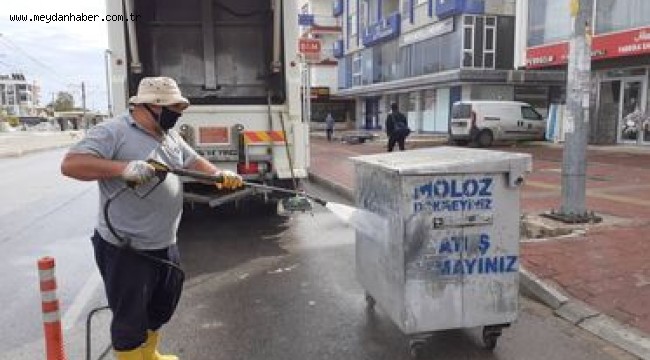 Konteynerler, çöp konteyneri yıkama ve dezenfekte aracının kollarına sabitleniyor. Hidrolik mekanizma ile ters çevrilen konteyner, püskürtülen basınçlı su ile yıkanıyor. Çok kirli konteynerler için bu işlem birkaç kez tekrarlanıyor. Araçtan yere indirilen çöp konteyneri, ekipler tarafından köpükle yıkanarak, basınçlı tabancayla durulama işlemi gerçekleştiriliyor. Sabit yerlerinin temizlenerek, dezenfekte edilmesinin ardından konteynerler, yerlerine konularak, kullanımına hazır hale getiriliyor.