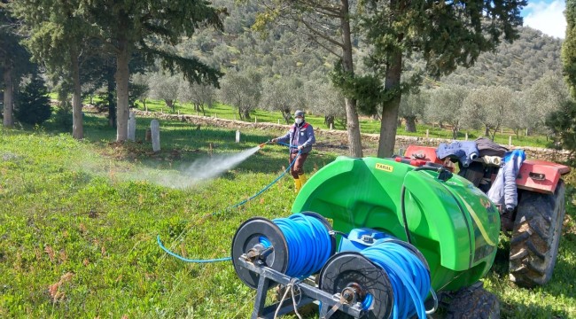 İlçe genelindeki tüm mezarlıkları kapsayan çalışmalarda, yabani ot ilaçlama,
