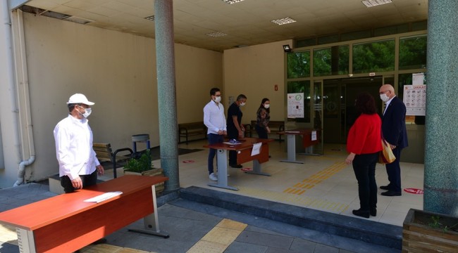 Sınav güvenliği ve hijyenle ilgili yapılan çalışmalarla ilgili de bilgi veren Prof. Dr. Savaş ‘‘MSÜsınavı öncesi, sınav yapılacak okullarımızla ilgili gerek sınav salonlarında sıralar arasındaki mesafe gerekse de dezenfekte işlemlerini özenli bir şekilde tamamladık. Sınavdan bir gün önce de bu dezenfektasyon işlemleri tekrarlanacak. Sınav günü sosyal mesafe kurallarına uyulması için Bina Sınav Sorumlularımızve Bina Yöneticilerimiz gerekli tedbirleri almaları konusunda bilgilendirildi. ÖSYM tarafından sınav günü bina girişinde adaylarımıza ve görevlilerimize dezenfektan, maske ve dezenfektan mendil temin edilecek. İsteyen adaylar ve görevliler kendileri de dezenfektan, maske, siperlik ve eldiven getirebilecekler. Sınav günü binalarımızın girişlerinde yığılmalara sebebiyet vermemek adına ailelerimiz binalarımızın bahçelerine alınmayacak.Emniyet görevlileri adayların ve sınav görevlilerinin üst aramalarını sosyal mesafe gözeterek el detektörü ile yapacaktır. Bina girişlerinde görev yapan emniyet görevlilerimize de bir çift maske verilecektir. Kovid-19 vakası veya gözetimi altında olan adaylarımız önceden başvuru yaparak, yedek sınav binasında gerekli tedbirler alınarak sınava girebilecekler. Karantina bölgesinde olan aday varsa ise bu adaylar da İl Sağlık Müdürlüğü tarafından sınava getirilecektir. Sınav güvenliği ve hijyenle ilgili gerekli tedbirlerimizi aldık. ÖSYM Uşak İl Sınav Merkezi Koordinatörlüğü olarak tüm tedbirlerimizi aldık, yapılacak sınavlara hazırız. ÖSYM Başkanı Prof. Dr. Halis Aygün’e sürece katkılarından dolayı teşekkür ediyorum. 14 Haziran Pazar günü yapılacakMSÜ sınavı ve 27-28 Haziran’da yapılacak YKS sınavına girecek tüm adaylarımıza başarılar diliyorum.”dedi.Ayrıca Prof. Dr. Ekrem Savaş sınav yapılacak binaları yerinde denetleyerek, alınan önlemler konusunda yetkililerden bilgi aldı.