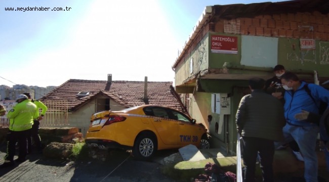Eve çarparak durabildiğini ifade eden taksi sürücüsü, araçta iki yolcunun da bulunduğunu söyledi.