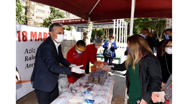 Muratpaşa Belediye Başkanı Ümit Uysal, 18 Mart Şehitleri Anma Günü ve Çanakkale Zaferi’nin 106’ncı yıl dönümü dolayısıyla Muratpaşa Camii’nde okutulan mevlidin ardından vatandaşlara lokma ve helva dağıttı.