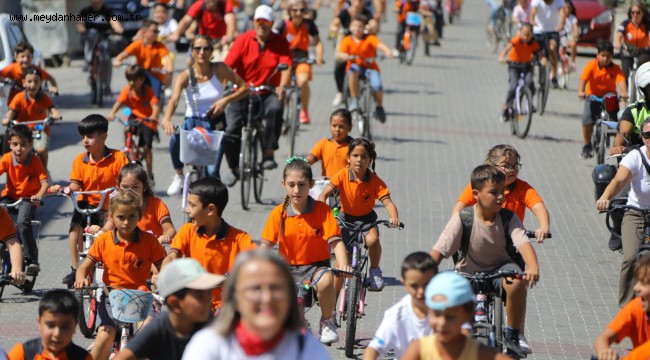 Selçuk'ta öğrenciler okula bisikletle gitti