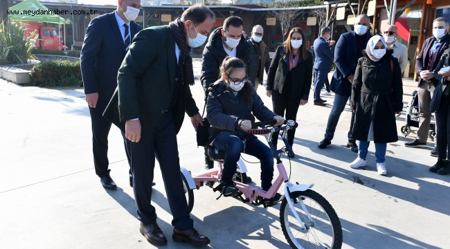 Beylikdüzü’ndeyaşayan serebralpalsi hastası 12 yaşındaki Ebrar Esma Dikmen, hep hayalini kurduğu bisiklete Beylikdüzü Belediye Başkanı Mehmet Murat Çalık vesilesiyle kavuştu. Ebrar Esma için Medical Park Florya Hastanesi tarafından bağışlanan özel yapım bisikleti, Yaşam Vadisi’nde Ebrar Esma’ya teslim eden Başkan Çalık, “Esma’nın yüzündeki mutluluk hiçbir şeyle ölçülemez. Sağlıklı günlerde kullansın.” dedi. Başkan Çalık’a teşekkür eden Ebrar Esma ise hayalini kurduğu bisikletiyle mutluluğa pedal çevirdi.