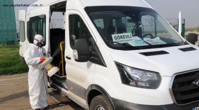 Servis araçları dezenfeksiyon ediliyor