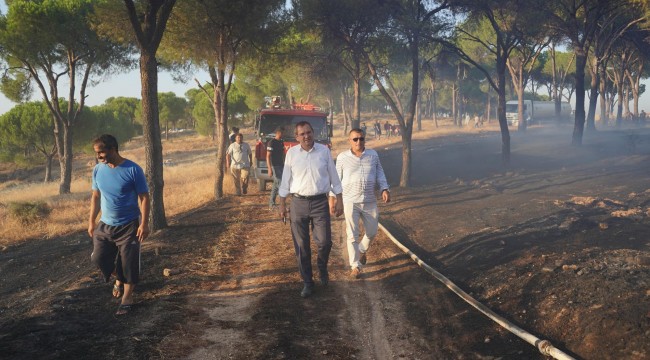 Ayvalık Belediye Başkanı Mesut Ergin’in ve vatandaşların da katıldığı yangın söndürme çalışmalarında, Balıkesir Büyükşehir Belediyesi Ayvalık İtfaiye Grup Amirliği ile Edremit Orman İşletmesi Ayvalık Şefliği ekiplerine, Ayvalık Belediyesi Park ve Bahçeler, Temizlik İşleri ve Zabıta Müdürlüğü ekipleri destek verdi.