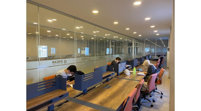 şekilde sağlanıyor. Öğrencilerin ders çalışması için yapılan kıraathane, pandemi kısıtlamaları gereği 30