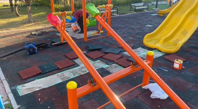 Ayrıca ekipler parklarda eskiyen, yıpranan, kırılan çocuk oyun gruplarında da onarma ve yenileme çalışması yürütüyor. Oyun gruplarında bulunan kırık ekipmanlar tamir edilerek yeni görünümlerine kavuşuyor.