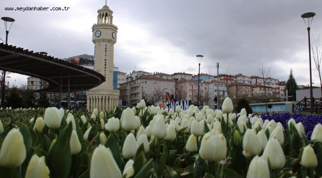 ekipleri tarafından ilçenin dört bir yanına rengarenk laleler ekilirken