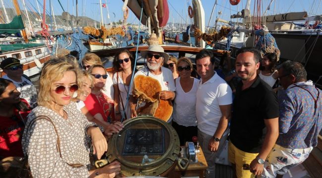 Bodrumlu sünger avcısı Aksona Mehmet, yeni nesillere sünger avcılığını aktarmak için çıktığı Bozcaada seferinin ardından Bodrum'da törenle karşılandı.