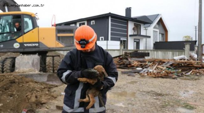 Sondaj çukuruna düşen yavru köpek kurtarıldı
