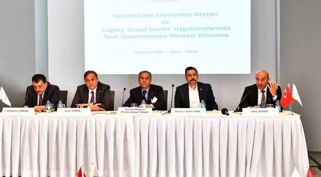 Başkan Soyer konuşmasında, yerel yönetimlerden beklentilerin altyapı, yol, su, atık, atık yönetimi ve imar hizmetlerinin çok ötesine geçtiğini vurgulayarak, “Yerel yönetimlerin mali yapıları çok daha önemli bir hale geliyor. Ülkemizde maalesef yerel yönetimlerin gelirlerinin toplam kamu içerisindeki payı oldukça düşük. Değişen kentsel anlayışın içerisinde mevcudun yeterli olduğunu söylemek mümkün değildir. Türkiye'de yerel yönetimlerin konumlandırılmasıyla ilgili bir paradigma değişikliğine ihtiyaç olduğunu düşünüyorum” diye konuştu.