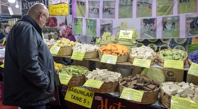 Hatay’ın en önemli sembollerinden biri olan tarihi Uzun Çarşı’nın İzmir’deki temsilinde sıra sıra dizilmiş baharatçılardan aktarlara, el üretimi hediyelik eşyalardan yöresel lezzetlere dair pek çok şey bulmak mümkün. Ziyaretçilerin baharat kokuları eşliğinde alışverişlerini yaptığı çarşı; peynir çeşitleri, künefe, çökelek, kuru yemiş, pekmez ürünleri, reçeller, şeker sucuğu ve türevleri, doğal baharatlar, salçalar, defne sabunları ve bitkisel ürünler herkese geniş bir alışveriş yelpazesi oluşturuyor. Kahvaltısından akşam yemeğine, kebabından tatlısına kadar her öğün ve yiyeceğine bol bol acı koyan Hataylıların çarşı stantlarını da en çok biber süslüyor. Biberden ağzı yanan ziyaretçiler çareyi; Hatay’a özgü meşhur kabak tatlısı, cevizli, sütlü ve tereyağlı taş kadayıf ve künefede buluyor. Antioksidan madde içeren cevizli sucuk, tatlıdan kebaba kadar tüm yemeklerde kullanılan üzüm pekmezi, vücuttaki hücreleri yenileyerek bağışıklık sistemini güçlendiren soğuk sıkım çörek otu yağı, 20 çeşit baharatın karışımı olan zahter ise Antakyalı esnafın İzmirlilere şifa önerisi oluyor. Bunun yanında içerisinde zahter, kekik, pul biber, salça bulunan ve taze çökelekten yapılan sürk; tulum, basma, künefe ve sıkma olmak üzere farklı peynir çeşitleri, humus, odun ateşinde pişen incir, ceviz, dut ve turunç reçelleri İzmirlilerin tadını damağında bırakan yöresel lezzetler grubunda yerini alıyor. |