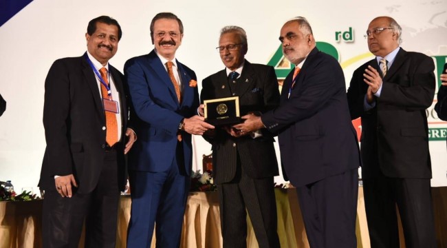 Pakistan Karaçi’de düzenlenen Türkiye - Pakistan Ticaret ve Sanayi Odası Forumu toplantısına da katılan Türkiye Odalar ve Borsalar Birliği (TOBB) Başkanı ve İslam Ticaret, Sanayi ve Tarım Odası Başkan Yardımcısı M. Rifat Hisarcıklıoğlu’na, İslam ülkeleri arasındaki ticaretin gelişimine yaptığı katkılardan dolayı Pakistan Devlet Başkanı Arif Alvi tarafından ödül verildi.
