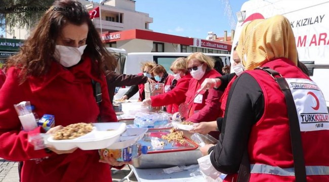 Türk Kızılayı Foça Şubesi gönüllüleri Foça Demokrasi Meydanı’nda Şehitler için hayır yemeği dağıttı. Türk Kızılayı İzmir Bölge Müdürlüğü’nün desteğiyle kendi aşevinde pişirilen hayır yemeği ilçe programları kapsamında halka ikram edildi.