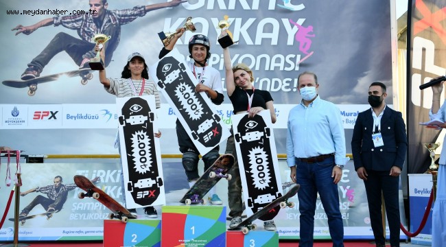 Türkiye Kaykay Federasyonu tarafından düzenlenen ve üç gün boyunca kıyasıya süren 2021 Türkiye Kaykay Şampiyonası’nın finalinde de heyecan dolu anlar yaşandı. Etkinliğin ev sahipliğini yapan Beylikdüzü Belediyesi tarafından Yaşam Vadisi 2.etapta hayata geçirilen ve 5.5 metre ile Türkiye’nin en derin kaykay havuzu olma özelliğine sahip olan Kaykay Park’ta düzenlenen şampiyonada, kadın ve erkek kategorilerinde yarışan 24 sporcudan 13’ü finale kaldı. Şampiyonada yarışan 11 yaşındaki minik Elanur Şen, cesareti ve yeteneğiyle büyük beğeni toplarken aralarında milli kaykaycıların da olduğu 5 kadın sporcu kadınlar kategorisinde mücadele verdi. Erkekler kategorisinde yarışan 8 sporcu ise yaptıkları hareketlerle büyük alkış topladı. Her bir sporcunun 45 saniye boyunca pist içerisinde kaykaylarıyla yaptığı hareketlerin jüri tarafından değerlendirildiği yarışın finalinde, kadınlarda Safa Merve Nalçacı, erkeklerde de Alparslan Ayhan birincilik kupasını kaldırdı. İlk üçe giren sporcuların kupa, madalya ve hediye çeklerini Beylikdüzü Belediyesi 1.Başkan Vekili Serdal Mumcu ve Türkiye Kaykay Federasyonu Başkanı Sedat Çelenk takdim etti. Aynı zamanda şampiyona boyunca ter döken tüm sporculara da anı madalyası verildi. “Burası kapısında kilit olmayan bir pist” Şampiyonanın kapanış töreninde konuşan Beylikdüzü Belediyesi 1. Başkan Vekili Serdal Mumcu, “Sporcu arkadaşlarımızı Beylikdüzü’nde görmek bizleri çok mutlu etti. Bundan sonraki şampiyonalarda da seve seve
