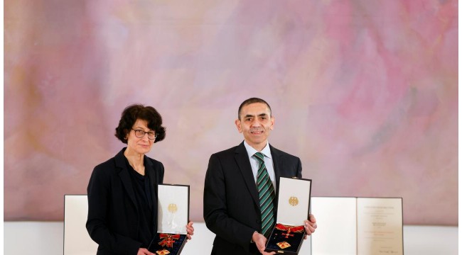 Almanya'da Türk bilim insanlarına devlet madalyası verildi. Koronavirüse karşı ilk aşıyı geliştiren BioNTech şirketinin kurucuları Profesör Doktor Uğur Şahin ve Özlem Türeci, ülkenin en üst düzey Yıldızlı Liyakat Nişanı'na layık görüldü.