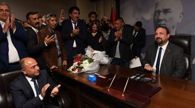 Çiğli’de 31 Mart mahalli idareler genel seçimlerinde yüzde 62,08 oy oranıyla belediye başkanlığına seçilen Utku Gümrükçü mazbatasını ilçe seçim kurulundan aldı, ardından belediye başkanlığına gelerek başkanlık görevini eski Başkan Hasan Arslan’dan devraldı. Başkan Gümrükçü, “Bugün itibariyle bir kamu görevlisi olarak vatandaşa hizmet için 7/24 çalışacağız” dedi.