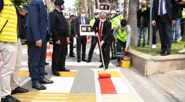 geçidinde bulunan beyaz şeritlerden ortadaki şeritler kırmızıya boyandı. Etkinliğe Vali Ersin
