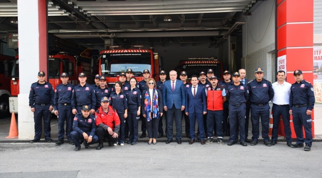 Aydemir, kaskın üzerine “İtfaiye teşkilatımızın 94. yıl dönümünde birlikte olmaktan gurur ve şeref duyuyorum. Başarılarınızın devamını dilerim” notunu yazarak imzaladı. Sonrasında İtfaiye Daire Başkanlığı'nda incelemelerde bulunan Vekil Aydemir, tüm itfaiye personelini başarılı çalışmalarından dolayı kutladı.