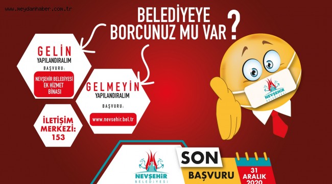 Kanundan yararlanmak için vatandaşların 31 Aralık 2020 mesai bitimine kadar Nevşehir Belediyesi’ne şahsen veya www.nevsehir.bel.tr adresinde bulunan e-belediye hizmetine üyelik işlemi yaptıktan sonra 7256 Yapılandırma Başvuru sekmesine tıklayarak başvurmaları gerekiyor.