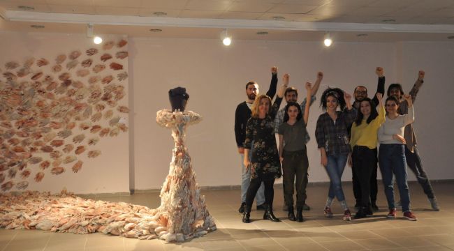 Ege Üniversitesi Eğitim Fakültesi Güzel Sanatlar Eğitim Bölümü Sergi Salonu’nda "Yardım Eli Değil Dayanışma Eli" enstalasyonu sanatseverlerle buluştu.