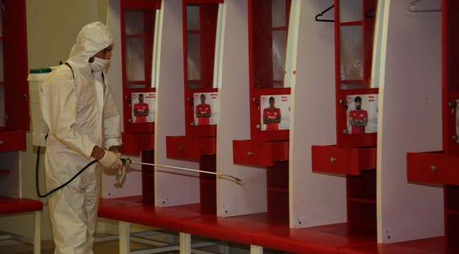 Süper Lig’in 27. haftasında Pazartesi günü oynanacak Sivasspor-Denizlispor karşılaşması öncesi, ev sahibi ekibin maçlarının oynadığı yeni 4 Eylül Stadyumu, Sivas Belediyesi Veteriner İşleri Müdürlüğü ekipleri tarafından dezenfekte edildi. Dezenfekte çalışmaları kapsamında tribünler, yedek kulübeleri, saha, soyunma odaları, koridorlar ve toplantı salonları ayrı ayrı temizlendi.