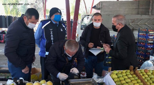 Tartılarda hileli satış yapılıp yapılmadığını da kontrol eden ekipler, yanlarında getirdikleri tartılarla pazarcı esnafı tartısının ölçümünü kıyasladı.