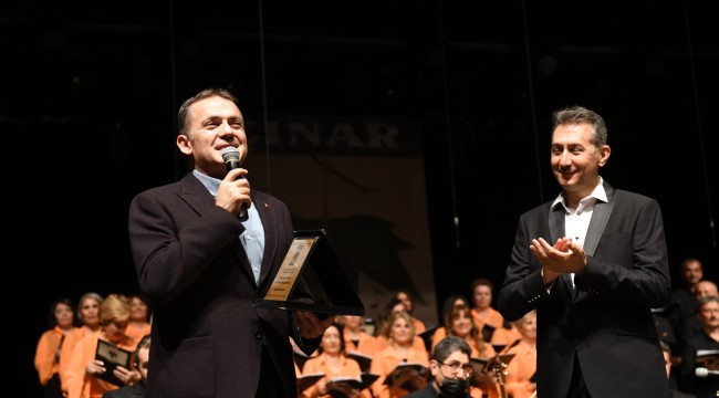 Konserde Mersin Yenişehir Belediye Başkanı Abdullah Özyiğit’e kültür ve sanata verdiği katkılardan