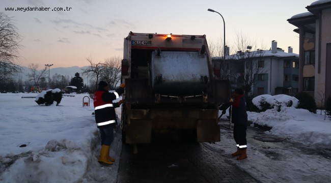 Temizlik İşleri Müdürlüğü ekipleri cadde, mahalle ve sokaklarda çöp toplamayı sürdürürken, kardan