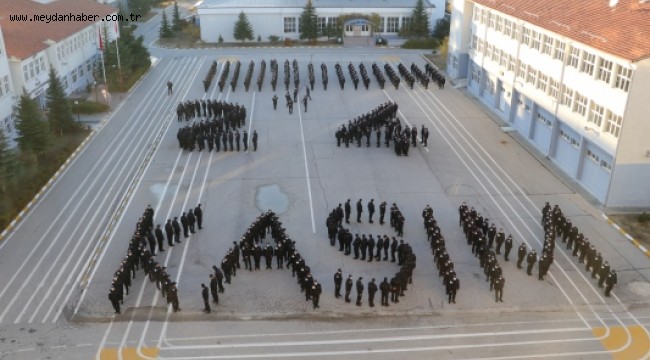 Yozgat Polis Meslek Eğitim Merkezinde (POMEM) eğitim gören polis adayları, oluşturdukları "24 Kasım" koreografisiyle öğretmenlerin gününü kutladı.