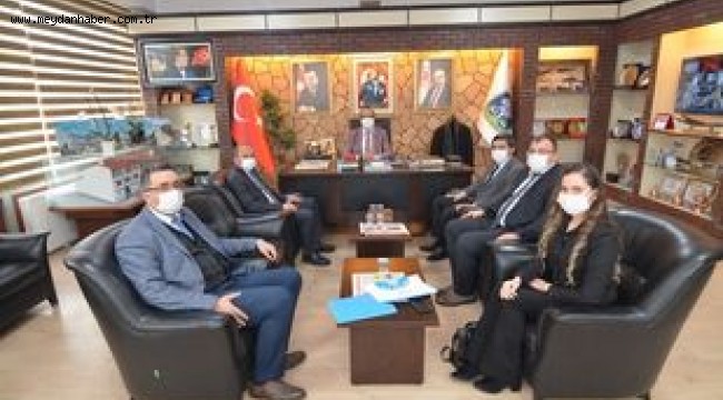 Mustafa Çöl’ü makamında ziyaret ederek kendisiyle fikir alış verişinde bulundular.